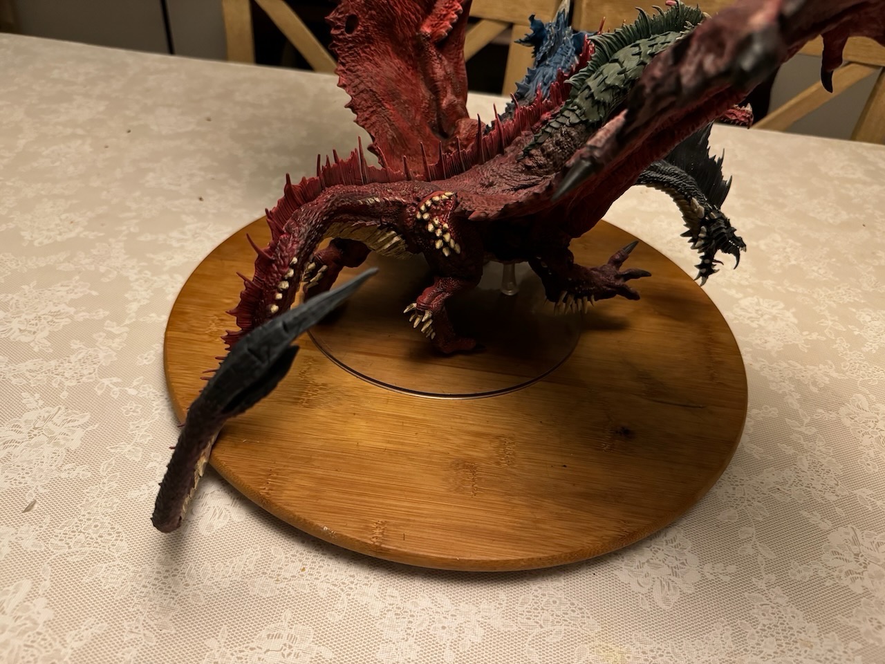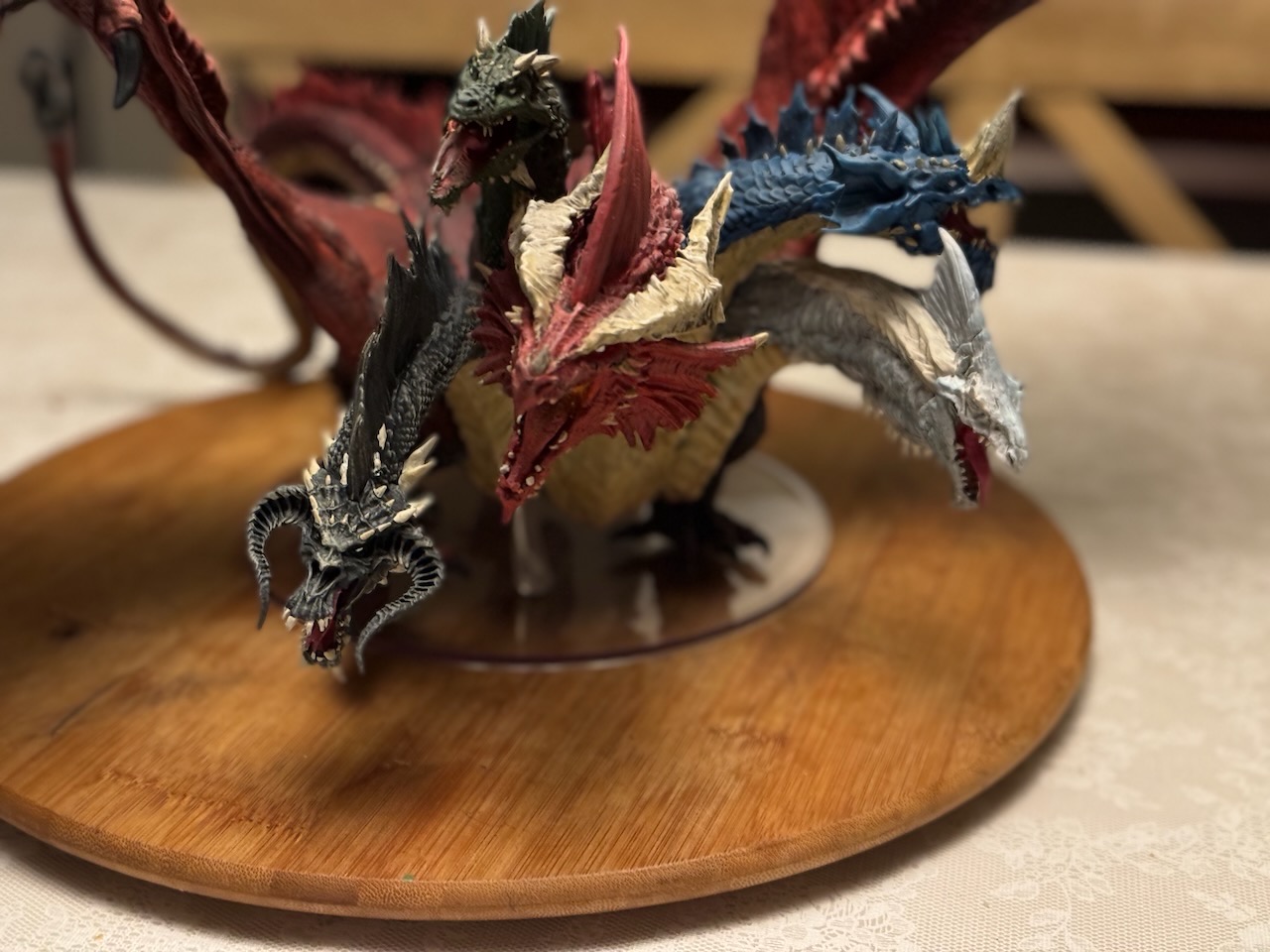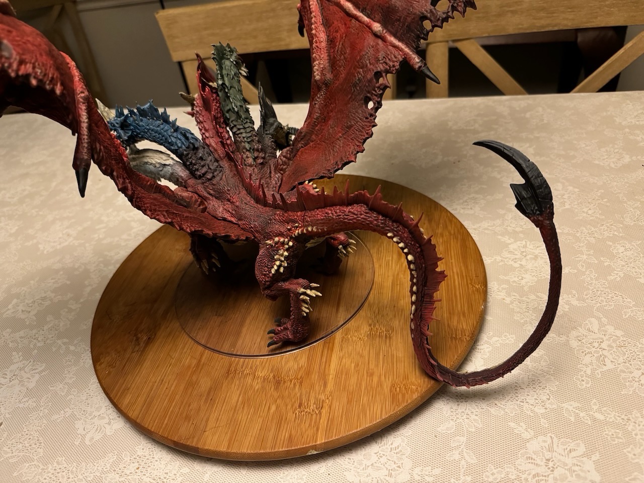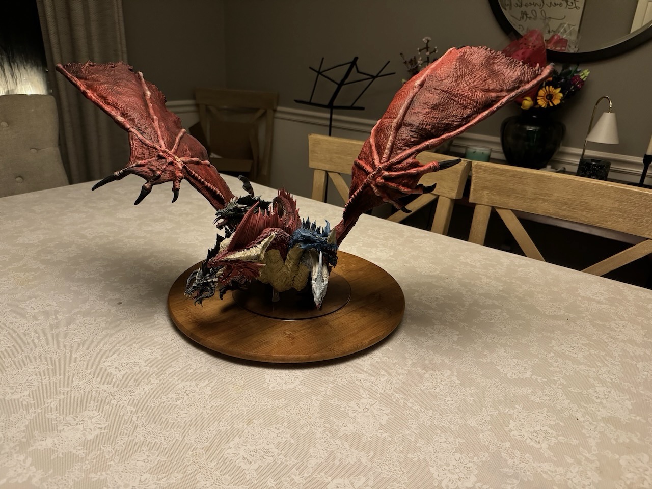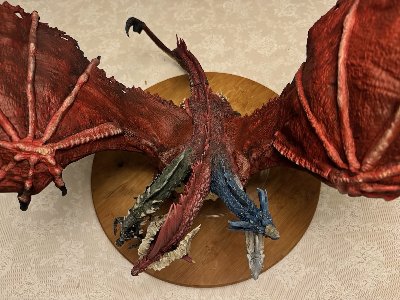 Kicked my painting game up a notch with this beast. I hesitate to even call this a Dungeons and Dragons "miniature" due to the sheer size of this thing. At 14" tall and 28" across at the wings, and even after base coating it with some matte red spray paint, this took a ton of paint. Although I painted it for a friend, and it won't end up in my office, still super happy with the way it turned out. Clocked in close to 30 hours from priming to the finished product. I actually wouldn't mind painting one again and keeping it for myself.